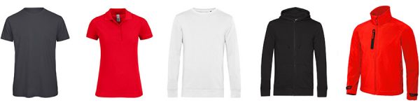 B&C collection nudi kvalitetne majice, puloverje, flise, jakne in druga oblačila. Novost v 2024 – v vseh bombažnih izdelkih uporabljajo bombaž organske pridelave oz. takega, ki bo kmalu zadostil tem pogojem.