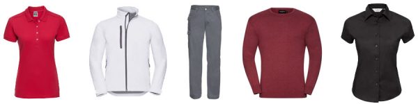 Oblačila Russell so znana po svoji kvaliteti in več kot 120 letni tradiciji. Nabor promocijskih oblačil sega od otroških majic do poslovnih in delovnih oblačil za odrasle.